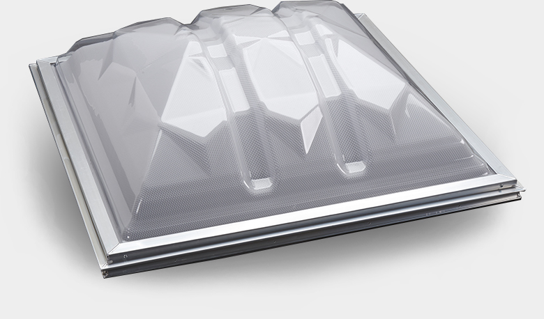 UV Guard Coextruded Polycarbonate smooth, clear outer dome and prismatic white inner dome.