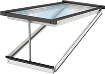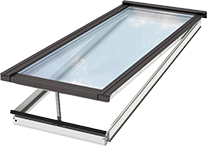 Modular skylights are available in fixed and venting modules. Due to a hidden chain actuator, fixed and venting skylight modules appear to be visually identical in the closed position. Venting modules are top-hung and can be used for both comfort and smoke ventilation.