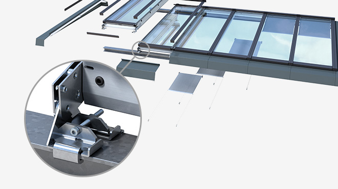 The sub-construction is not part of the prefabricated modular system because modular skylights require an accurate fixed-dimensioned substructure. Likewise, the strength of the sub-construction needs to be calculated from project to project, based on the building design and application size.